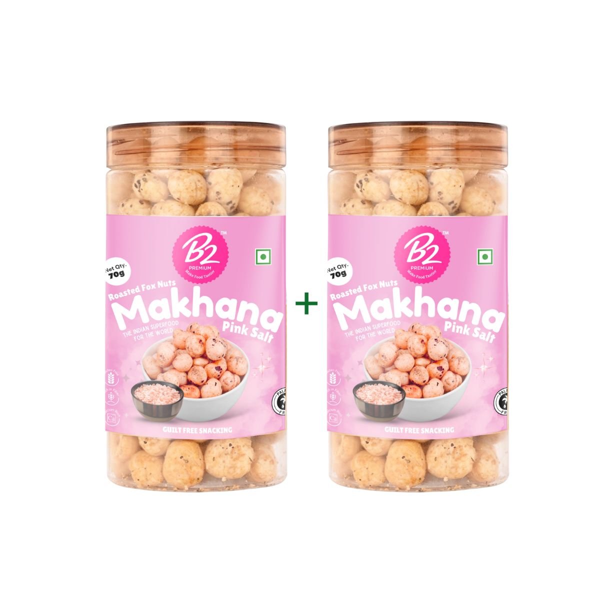 Indulge in the perfect balance of taste and health with the B2 Premium Roasted Makhana Pink Salt 70g. Each bite offers the goodness of naturally roasted fox nuts, seasoned delicately with pink salt for a flavorful yet nutritious snack.